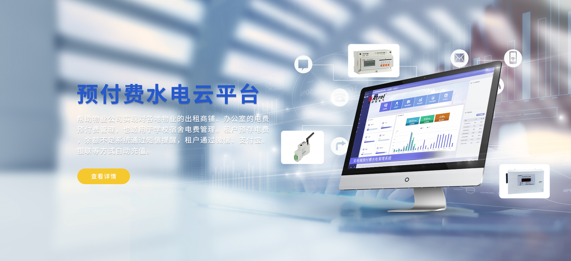 安科瑞提供的解決方案包括Acrel-EIoT能源物聯(lián)網(wǎng)云平臺、變電所運維云平臺、安全用電管理云平臺、環(huán)保用電監(jiān)管云平臺、智慧消防云平臺、能源管理云平臺、工業(yè)企業(yè)能源管控平臺、遠程預付費云平臺、餐飲油煙監(jiān)管云平臺、電動汽車/電瓶車充電樁收費管理云平臺、電力監(jiān)控/無線測溫系統(tǒng)、電能質(zhì)量治理系統(tǒng)、電氣火災監(jiān)控系統(tǒng)、消防設(shè)備電源監(jiān)控系統(tǒng)、防火門監(jiān)控系統(tǒng)、應急照明和疏散指示系統(tǒng)、智能照明控制系統(tǒng)、醫(yī)用隔離電源絕緣監(jiān)測系統(tǒng)等,幫助用戶實現(xiàn)能源智能化、可視化、精細化管理,提高用能效率和用能安全,為企業(yè)節(jié)能降耗和實現(xiàn)能源數(shù)字化建設(shè)提供數(shù)據(jù)服務。
